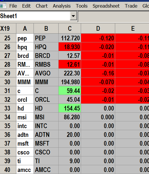hi, on my spreadsheet, the following symbols missing quotes always, INTC, MSFT, AMCC, CSCO what is the problem? |