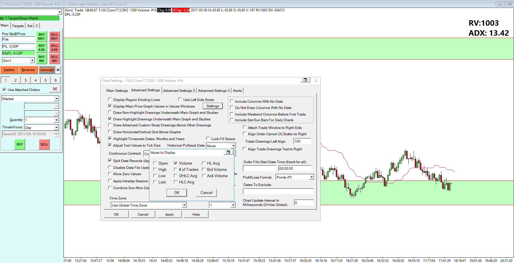 The easiest thing to do is to add the Daily Volume field to the Chart Header. Refer to: http://www.sierrachart.com/index.php?page=doc/WorkingWithCharts.html#RegionDataLine Sierra Chart Support - Engineering Level Your definitive source for support. Other responses are from users. Try to keep your questions brief and to the point. Be aware of support policy: https://www.sierrachart.com/index.php?l=PostingInformation.php#GeneralInformation For the most reliable, advanced, and zero cost futures order routing, *change* to the Teton service: Sierra Chart Teton Futures Order Routing |