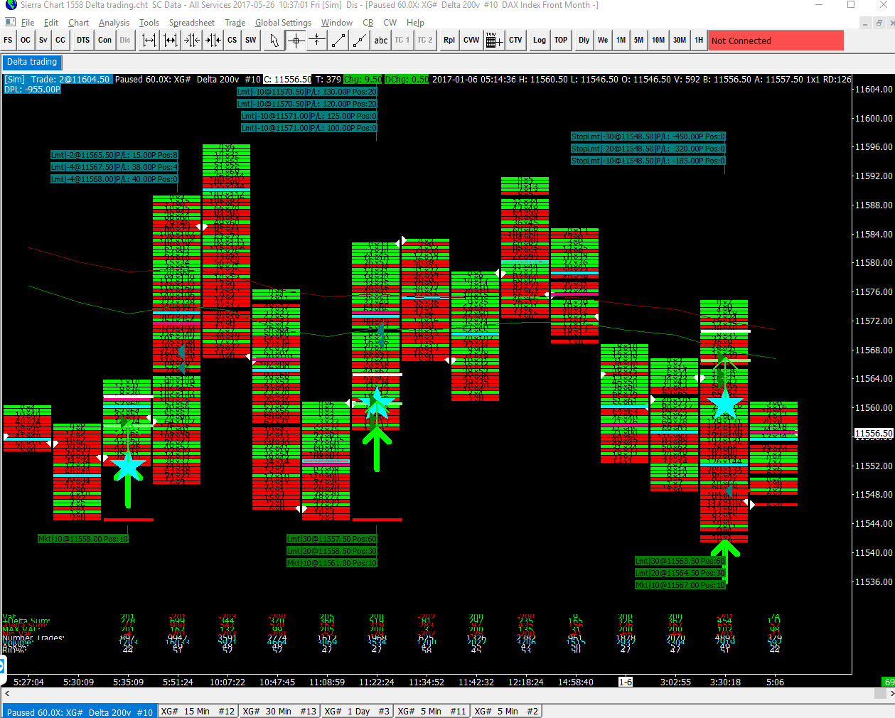 pls check attached screenshots. this is delta chart i have a signal on the chart on 01-05-17 when using standard replay i get the exits correct but under accurate replay there is a huge mass as i exit only once (but not in the log - it shows 2 exits and on chart i c only 1 exit where compared with standard replay i have all 3 exits) i didn't change settings between runs i am sure there is a bug here on the delta chart replay as i can see there is a spike in prices on that bar and if i send limit sell orders i would expect them to be lifted same as it does (as expected) in the standard replay i have sent the msg log for both standard replay and for accurate replay both speed 60 will appreciate your time verifying this as it looks to me as a bug as this happens again and again in delta chart but not on bar charts |