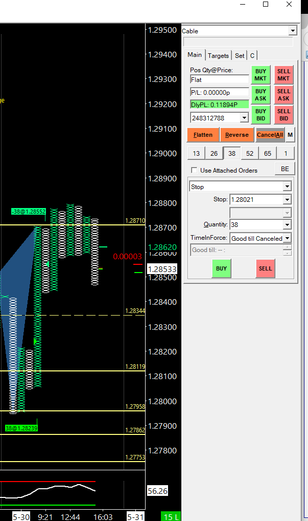 Good morning, I need an information about the trade P/L and the daily P/L in the chart trade window. I've set it on "Points - Ignore quantity" but I find the information gave me a little bit tricky. This mornig I took a trade and made +32 pips; then it should be mean that the daily P/L should display 32, right? Instead I've got the information that you find on the screenshot, such as 0.11894. What does this means? Which is the right set up I have to use in order to display what I would like to see? (such as +32 for this example) Thanks in advance and kind regards. Fabio. |