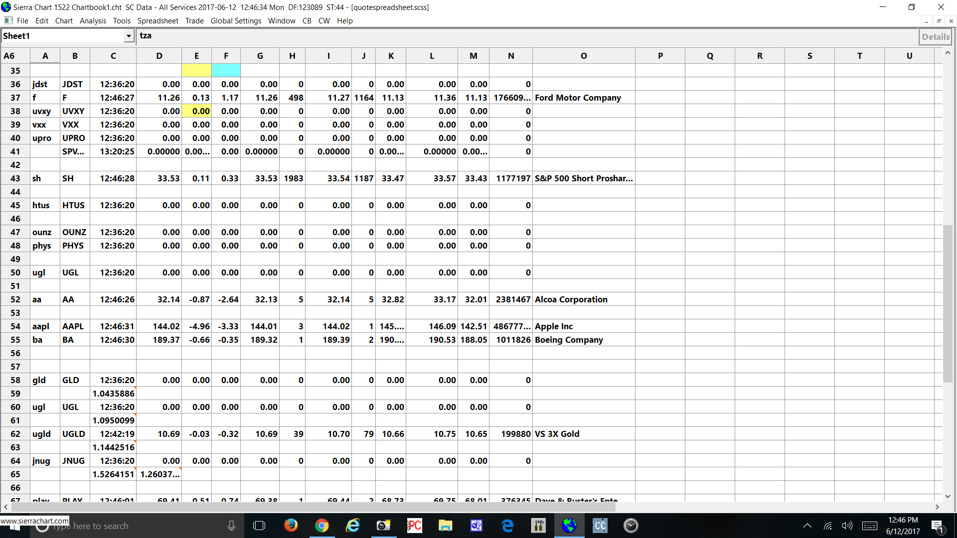 Tell us one of the symbols that is not updating and provide a copy of the Message Log by following these instructions: Support Board Posting Information: How to Post Your Message Log (Required In Some Cases) Sierra Chart Support - Engineering Level Your definitive source for support. Other responses are from users. Try to keep your questions brief and to the point. Be aware of support policy: https://www.sierrachart.com/index.php?l=PostingInformation.php#GeneralInformation For the most reliable, advanced, and zero cost futures order routing, *change* to the Teton service: Sierra Chart Teton Futures Order Routing Date Time Of Last Edit: 2017-06-12 16:36:05