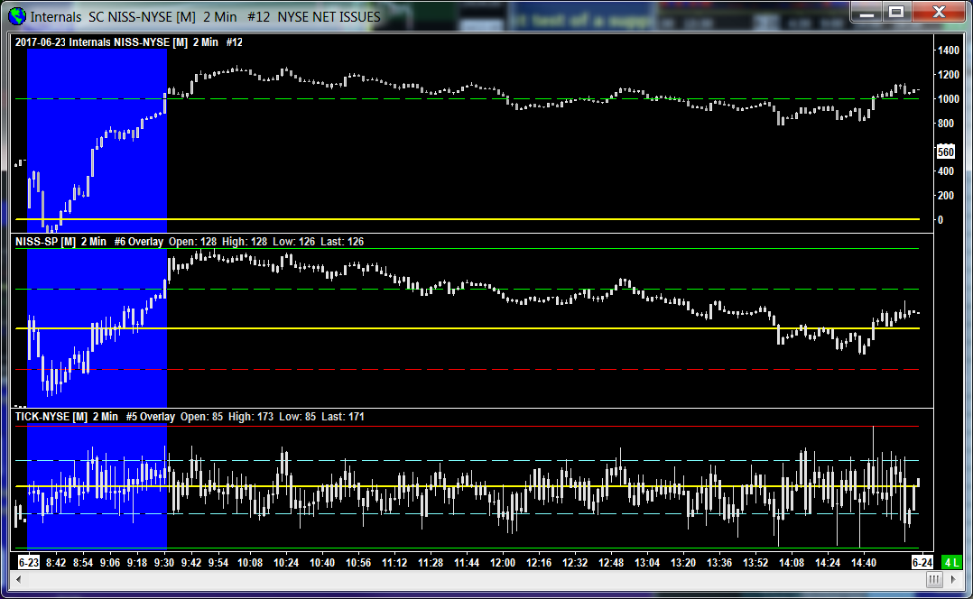 Hello Sierra, A few problems here: 1)I cannot find how to remove the Open, High, low and, last names from the Region Data line. Attached is the chart with the study over lays on it. 2) Is it possible to substitute the titles names on the Region Data lines for user selected, i.e. NISS-NYSE to ADD? 3) How do I set the scale values independently? Meaning in the attached chart there are no scales visible for the NISS-SP and the TICK Thanks Date Time Of Last Edit: 2017-06-24 18:36:47