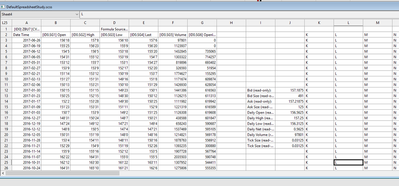 I have a historical chart of the 30 Yr Bond (ZBU7) and there are 3 months of data missing. I've attached a screenshot of the spreadsheet. The gap is between 2-27-17 to 5-31-17. I'm using the continuous futures contract - volume based rollover. Is there a different setting I should use to fill the gap? Maybe an @ZB option for a continuous contract? I've tried to delete and reload and it isn't working. Thanks.