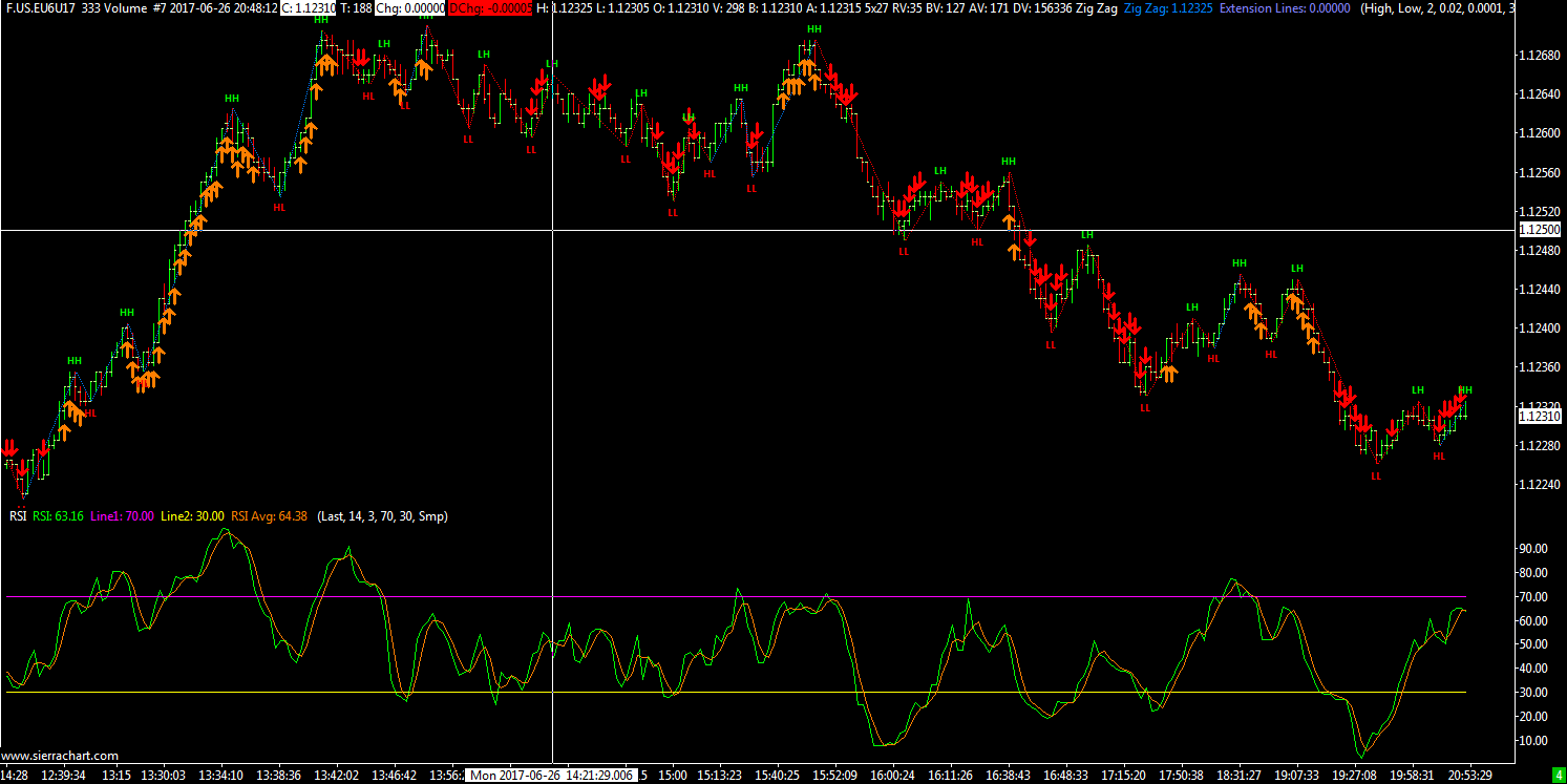 Hi, I tried using your inbuilt Divergence Detector study. I read the study description in detail, tried it with different settings but couldn't manage to get an output that which in line with Divergence theory (when price is making a higher high, the comparison indicator will make a lower high). I'm attaching a screenshot of my sample chart and the study settings. I applied the study over Price vs RSI. Could you please help me interpret the output or tell me where i'm going wrong. Here below is a screenshot of my sample chart http://www.sierrachart.com/image.php?Image=1498506521348.png I've also attached a screenshot of study settings. Thanks M Date Time Of Last Edit: 2017-06-26 19:56:13