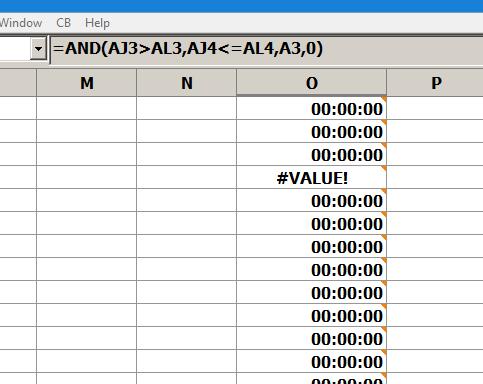 Hi, I am trying to time stamp an event in a SS using this formula. The formula references the A3 time cell. Trigger works fine but returns "VALUE" instead of the time. I have tried changing the formatof the cell. =AND(AJ3>AL3,AJ4<=AL4,A3,0) Thoughts appreciated, Cy |