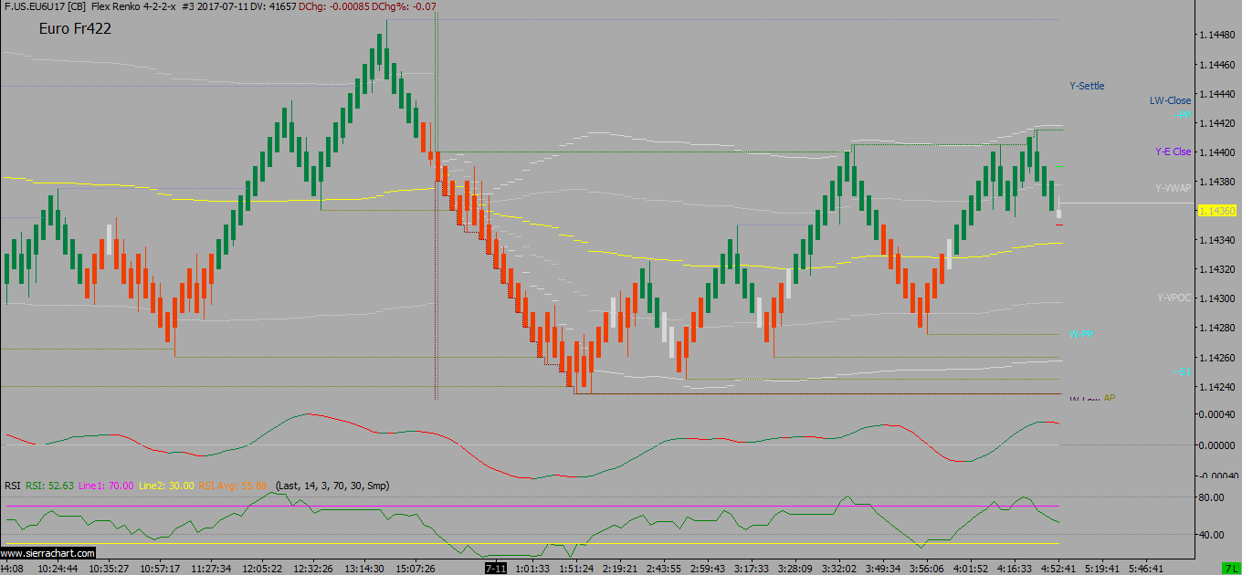 Both the attached images were captured approx 4:50am 11 July USA ET and are of the same place on the Euro (6E). The file with v1570 in file name is correct with 3 instances of the Color Bar Based on Alert correctly fully painting the price bars Red, Green or Neutral. However installing v1571 or later results in large instances of the underlying price bar colouring showing through and the Color Bar Based on Alert study painting the bars at best intermittently. (see file attached with v1571 in the file name). I have tried this on W7 and W10 and with different chart books. I cannot tell from the change log what happened from V1570 to v1571. I have been running this study in this format for over a year now on numerous earlier versions of SC. |