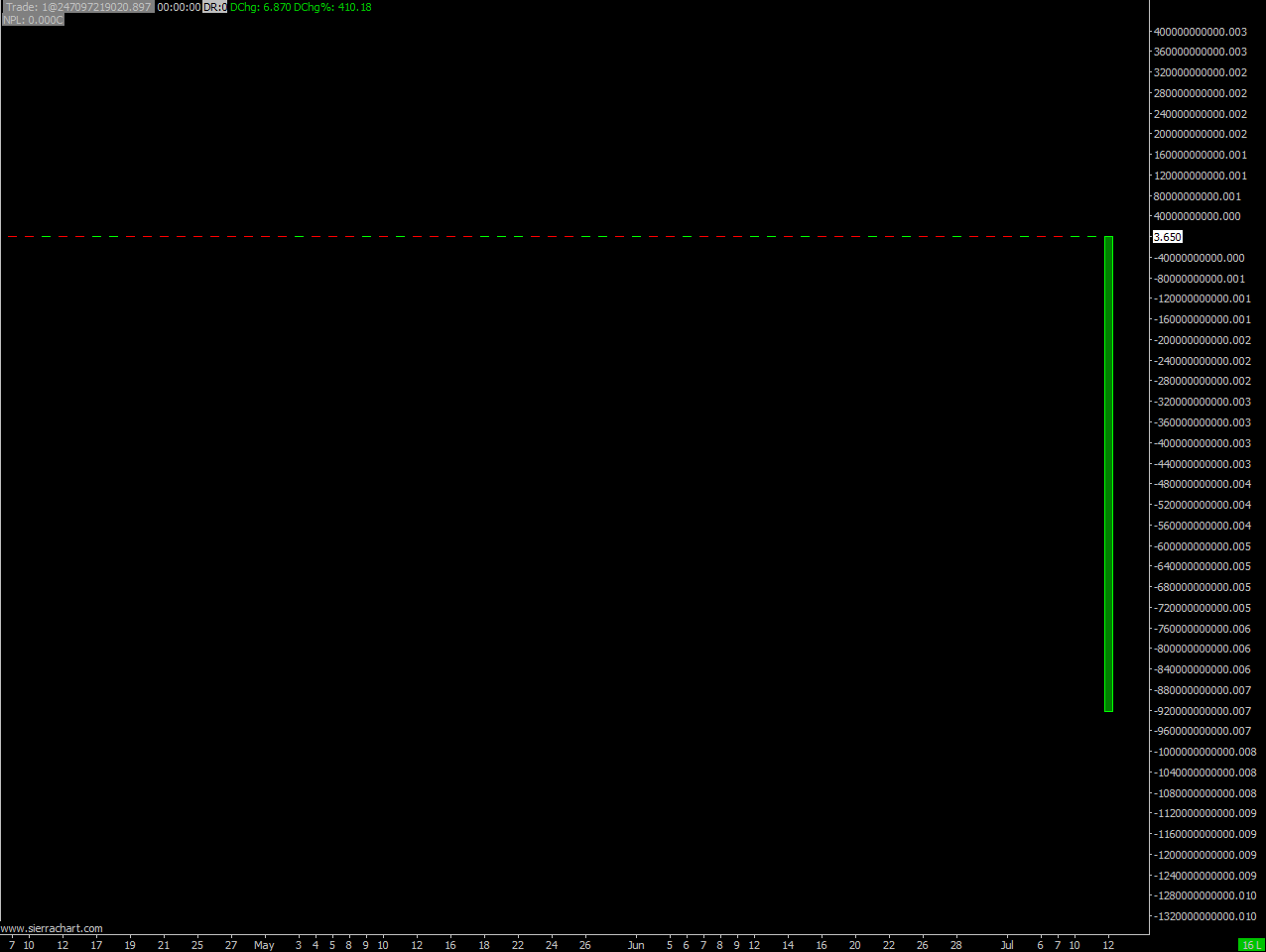 Tried action in post #2, it did not work. Deleted scid file and reloaded, that did not work either. Problem due to a large negative value on data for 12th July. Attached Daily file for the symbol illustrates the issue. Please have another look into the situation. http://www.sierrachart.com/image.php?Image=149992693999.png |