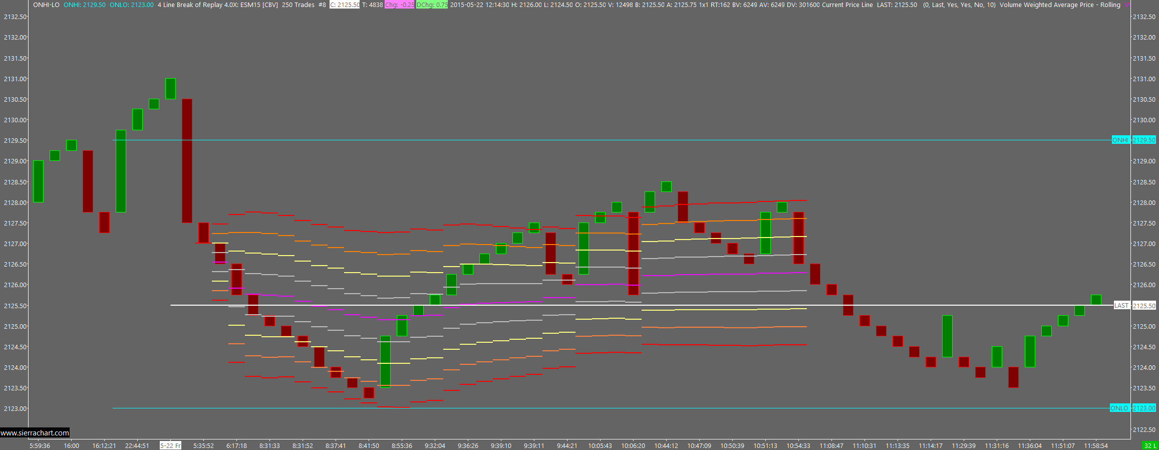 http://www.sierrachart.com/image.php?Image=1500648512432.png I'm replaying previous days at 4x and when starting out the rolling vwap lines draw correctly. At some point the lines stop and I need to go into the vwap study, and click apply without changing anything and it will draw the lines. |