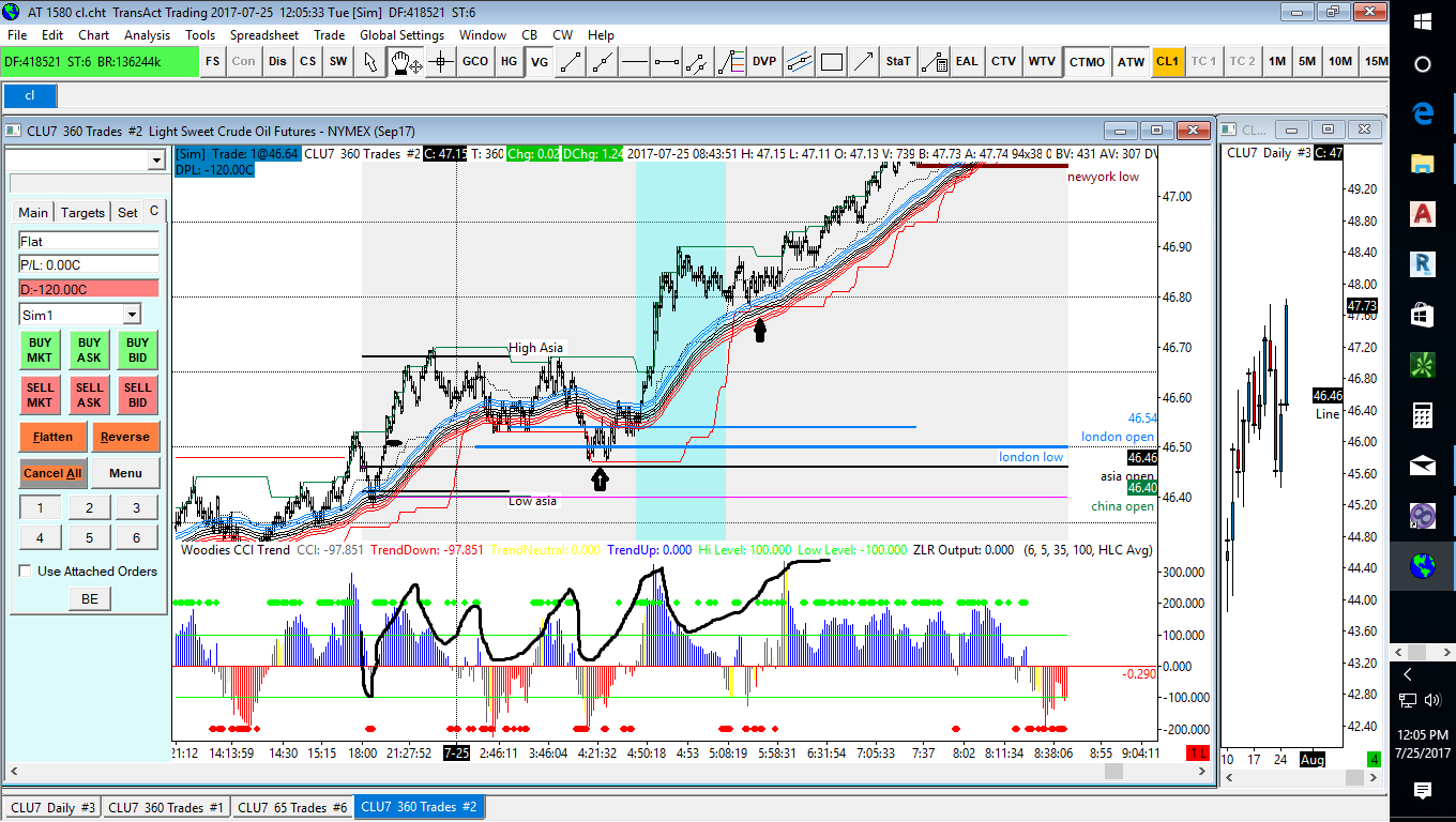 yes, but I want it to measure from the open price of the day so 17:00.(so that the open represent the 0 line) take today for example,price open at 46.46 (cruel oil) therefore the zero line will start measuring from there 46.46 as price goes up or down. the input moving average will go into overbought or oversold. I believe that cci will measure + or - from that point giving the user a better view of the market or making the chart a big cci own itself. I try to download a image file, but is not letting me. thanks again