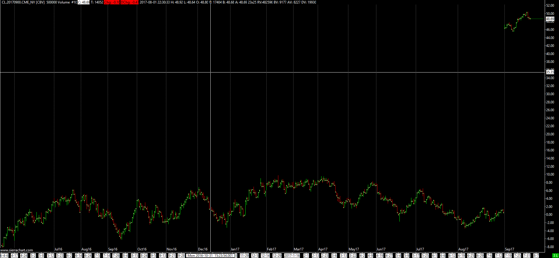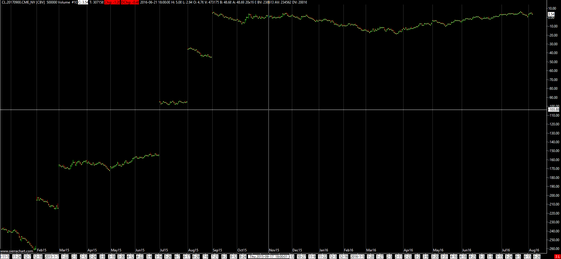 I am using CTS T4 Fix and everytime I pull up a chart of CL I have gaps in my data specifically data 7-17 jumps from .46 cents to $47. I dont have these issues on any other contracts. I am using Sept Crude CL.20170900.CME_NY |