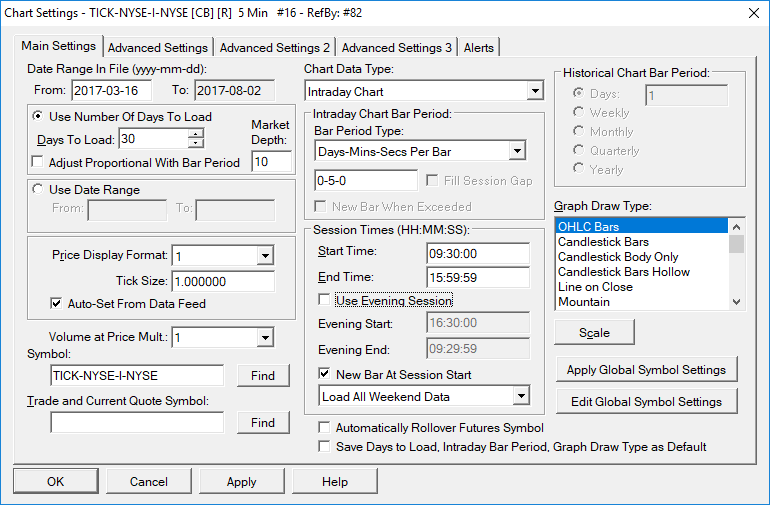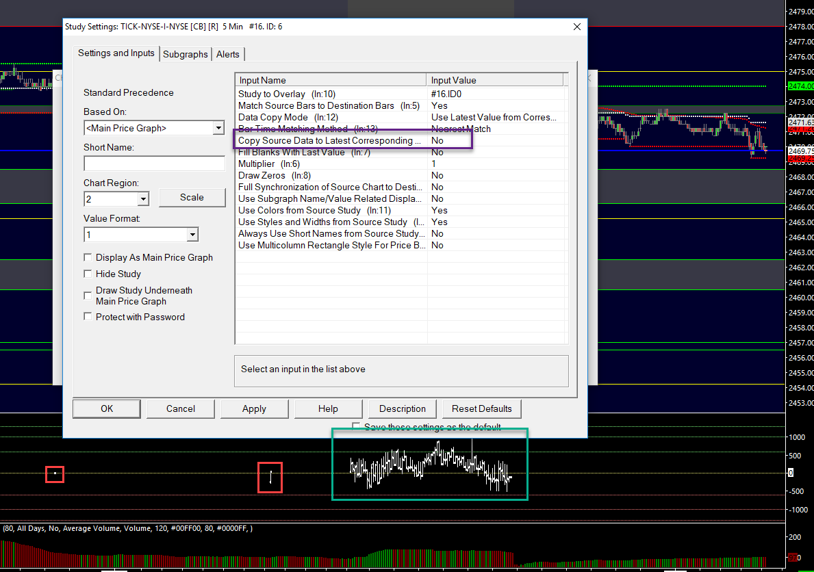 Hello SC, i have some issues with overlaying the NYSE TICK... even though the source chart is only from 9:30 to 16:00 there appear some "magic bars" on the target chart... see attachments.. what do i do wrong? thanks, Andreas |