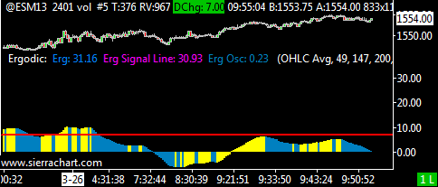 Well...Ergodic is made of three pieces Erg, Erg Signal line, and Erg Oscillator. I only draw the last one. The first two use the draw style "Do Not Draw" so they do not clutter up my chart.