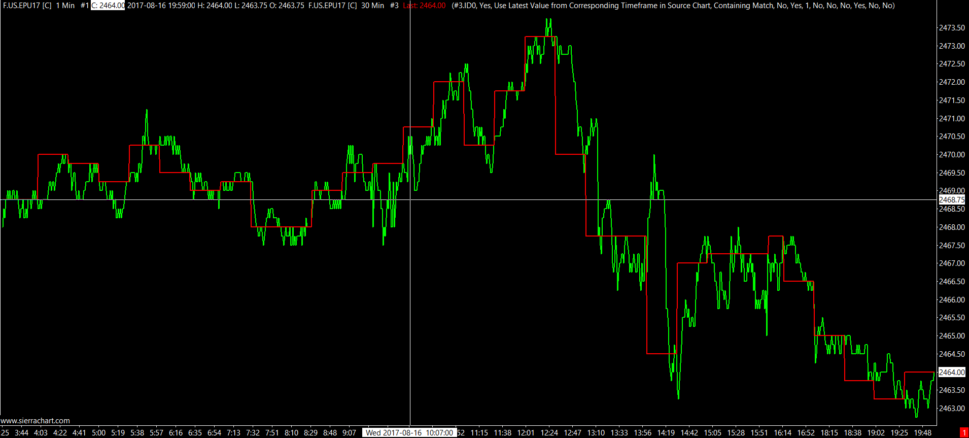 http://www.sierrachart.com/image.php?Image=1503246719949.png It is a 1 minute chart with an overlay of a 30 min chart. |