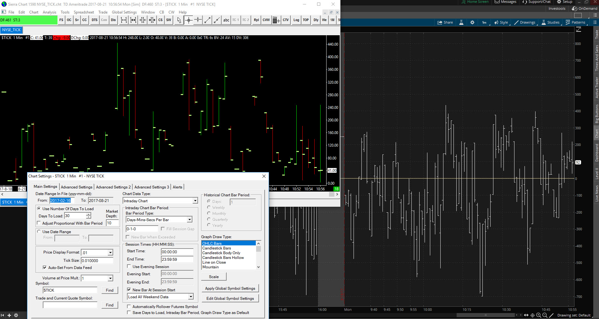Chart ThinkOrSwim $TICK