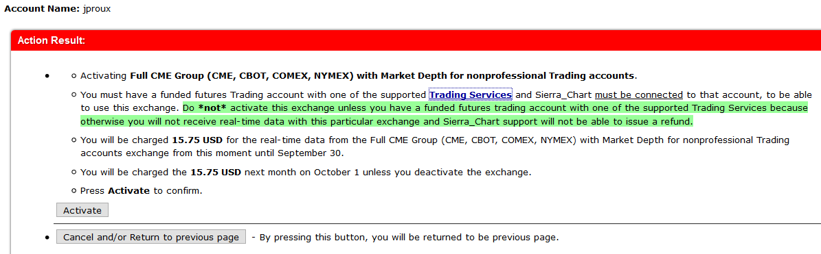 Hi, I'm with TopStepTrader and I'm trying out their new platform because they support the JigSaw DOM which you guys don't. However, the SC charting package is one of the best in the business and I would like to continue to make use of your services. The only way I can connect to both the JigSaw Dom and make use of your service is to subscribe to both the TST platform and your data feed. However, I had to renew my subscription ($33) and activate the real-time data connection ($20 pro-rated) before I could activate the 'Full CME group with market depth for non-professionals.' Unfortunately, I got the attached warning and I thought TST was a SC trading service. Now I don't know what to do. I really want to make use of your service but I'm reluctant to pay professional data fees as they are very steep for a retail trader. What are my options here? If you cannot assist then can I request a refund please? |