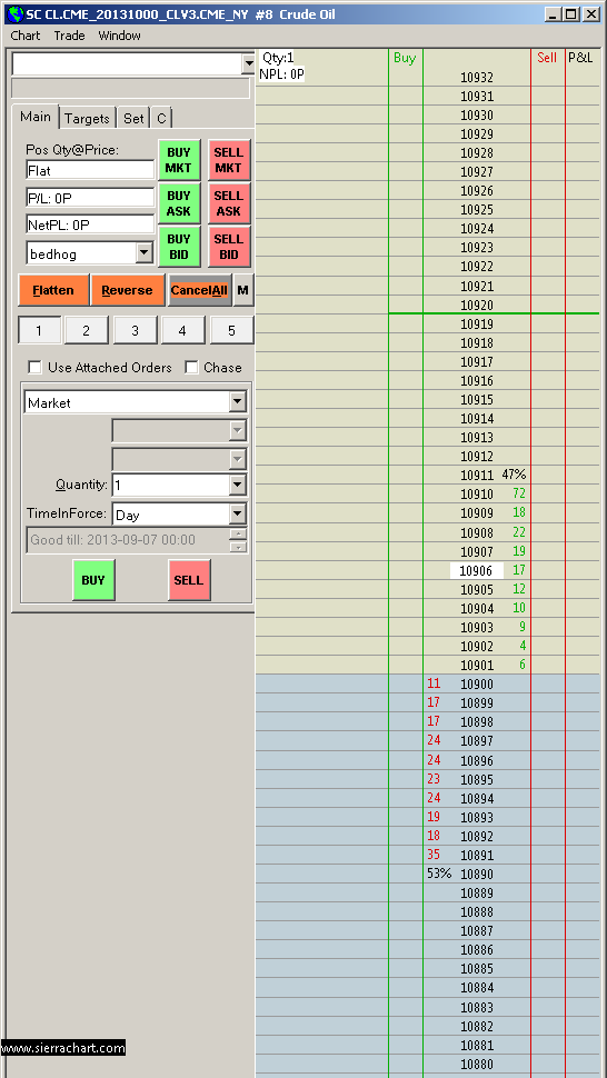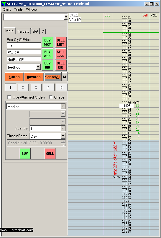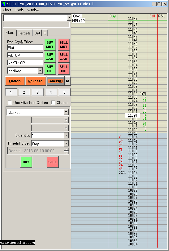 We have been doing testing with the CL market on the CTS Live server: http://www.sierrachart.com/image.php?l=1378713405191.png To this moment the market depth continues to look correct. Sierra Chart Support - Engineering Level Your definitive source for support. Other responses are from users. Try to keep your questions brief and to the point. Be aware of support policy: https://www.sierrachart.com/index.php?l=PostingInformation.php#GeneralInformation For the most reliable, advanced, and zero cost futures order routing, *change* to the Teton service: Sierra Chart Teton Futures Order Routing |