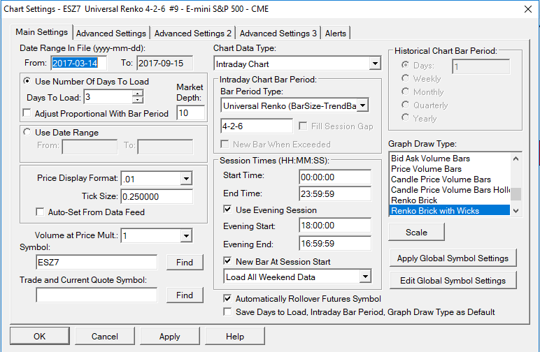 Let us know when you have had a chance to test the latest prerelease version because we do think it should do exactly what you require if you use this Renko Mode setting: New Trend Bar When Range Exceeded | New Reversal Bar When Reversal Amount Met Plus 1 Tick and References Prior Close Reference: Renko Bar Charts: Renko New Bar Mode Sierra Chart Support - Engineering Level Your definitive source for support. Other responses are from users. Try to keep your questions brief and to the point. Be aware of support policy: https://www.sierrachart.com/index.php?l=PostingInformation.php#GeneralInformation For the most reliable, advanced, and zero cost futures order routing, *change* to the Teton service: Sierra Chart Teton Futures Order Routing Date Time Of Last Edit: 2017-11-21 02:57:45