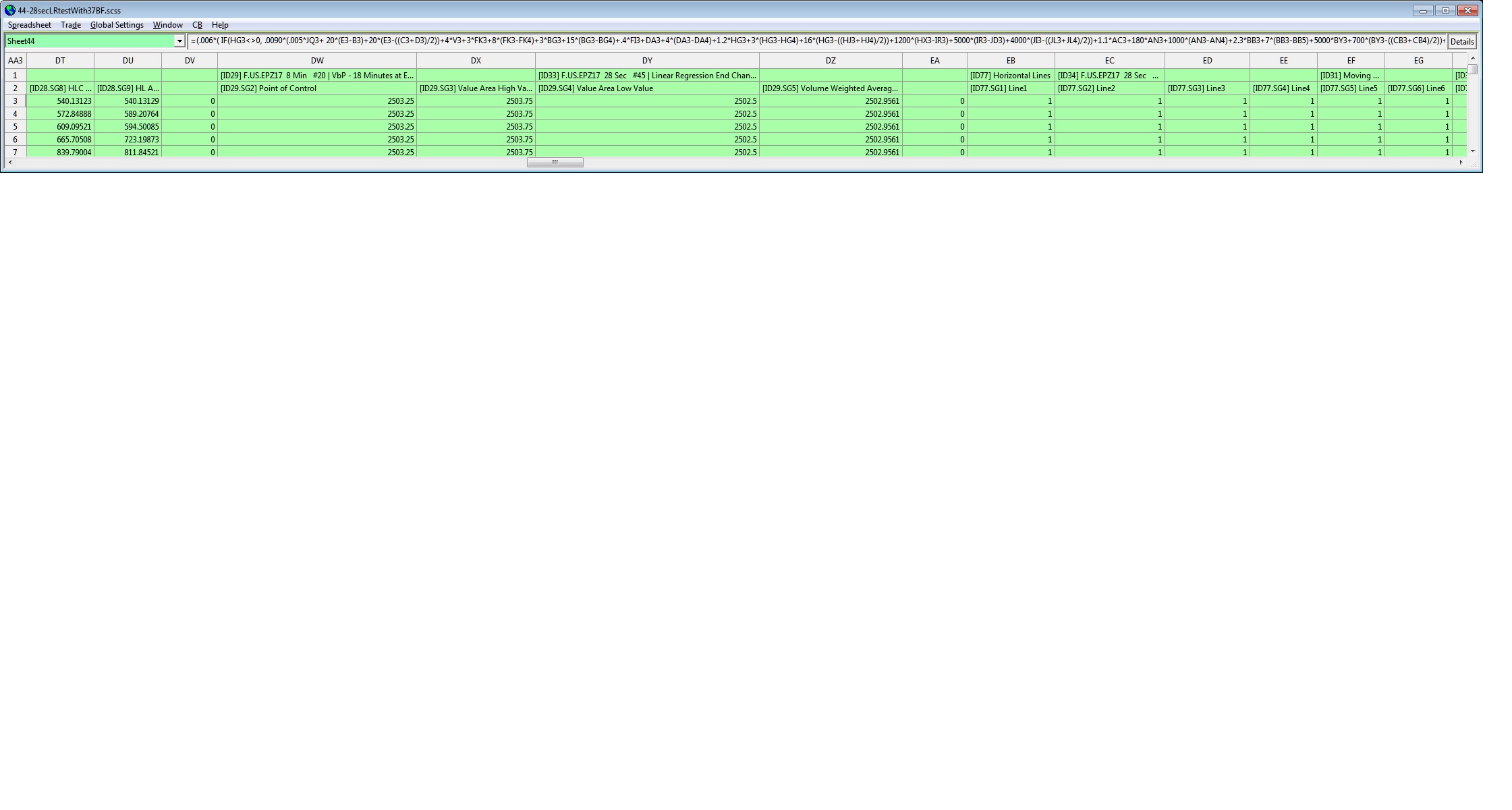 In regards to post #12, allow up to 12 months for these potential additions. Yes we are that busy. It will not help to post anything further. It is not anything we can pay attention to. Once again we have provided a definitive and proper solution to this years ago. You need to use it.: Working with Spreadsheets: References to Study Subgraph Columns when using the Spreadsheet Study Sierra Chart Support - Engineering Level Your definitive source for support. Other responses are from users. Try to keep your questions brief and to the point. Be aware of support policy: https://www.sierrachart.com/index.php?l=PostingInformation.php#GeneralInformation For the most reliable, advanced, and zero cost futures order routing, *change* to the Teton service: Sierra Chart Teton Futures Order Routing Date Time Of Last Edit: 2017-09-29 04:48:54