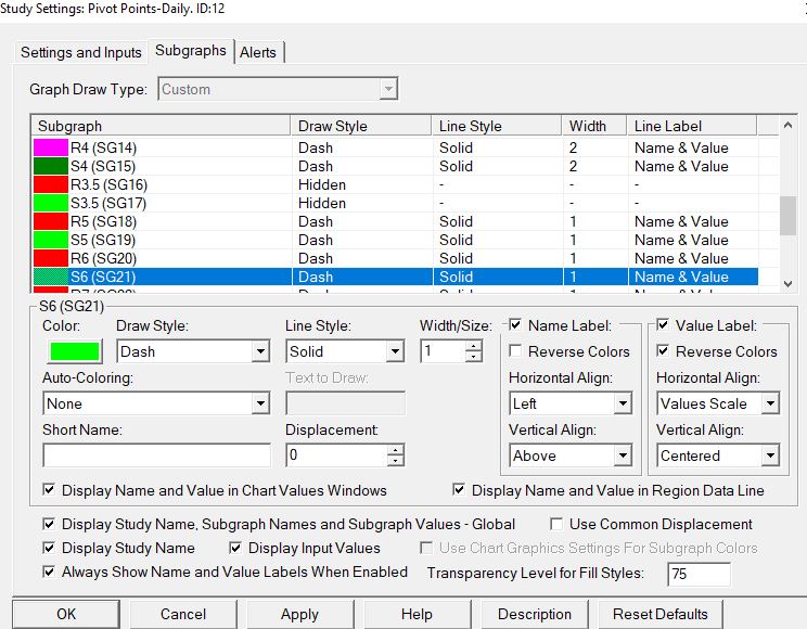 Hi, The position R6 and S6 lines and values of Pivot point study (Formula Type=24) cannot be aligned to the left as other lines (R1,S1...R5,S5). Please advise. Thanks Charlie |
