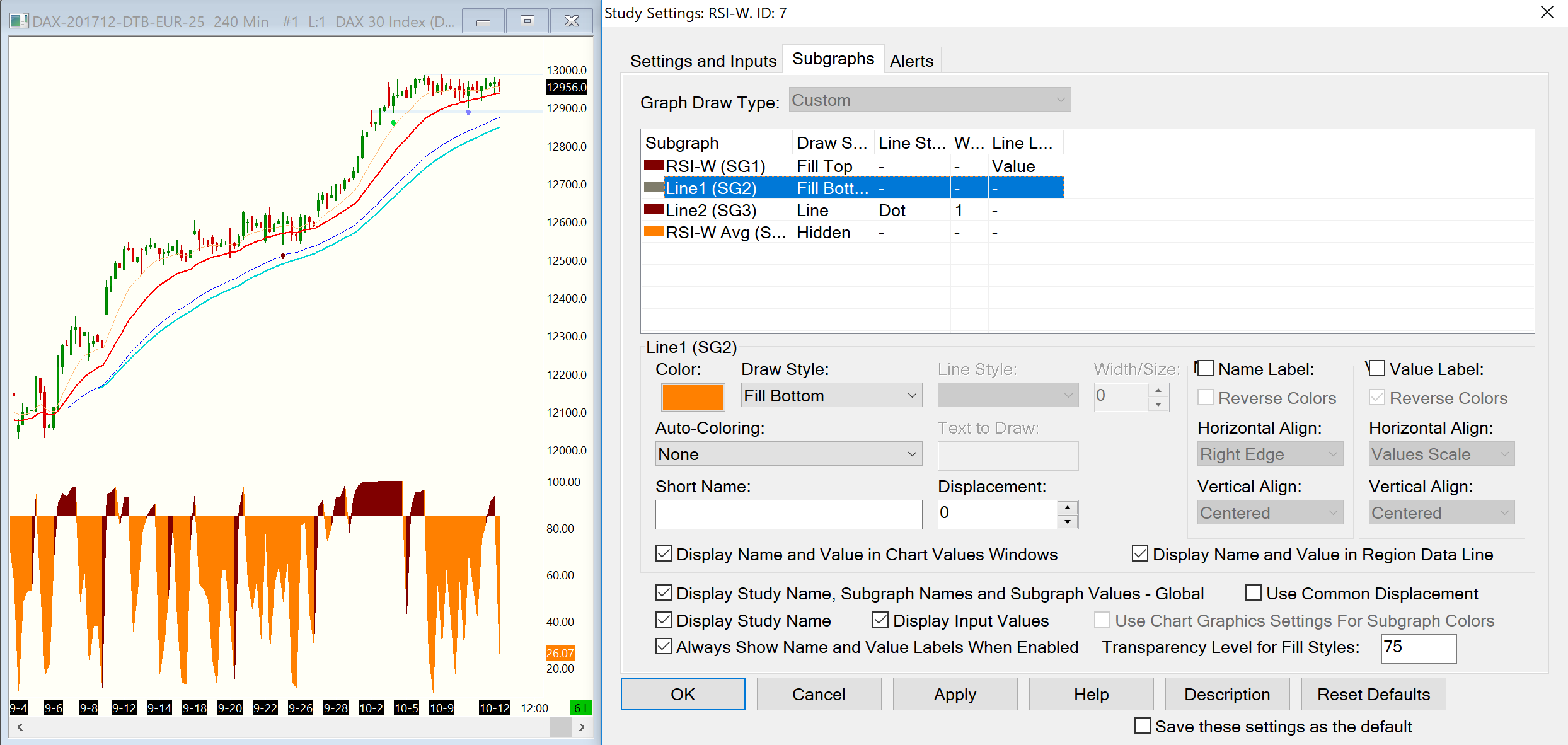 I'm using RSI-W, trying to use Fill Bottom/Top to color only the area when RSI is above 85. When using Fill Bottom and Fill Top, this works fine where Bottom<Top (using Top color, dark red in attached example). But it also colors the area where Bottom>Top (using Bottom color, orange in attached example), and I do not want that ... how can I avoid this? See attachment, thank you in advance. |