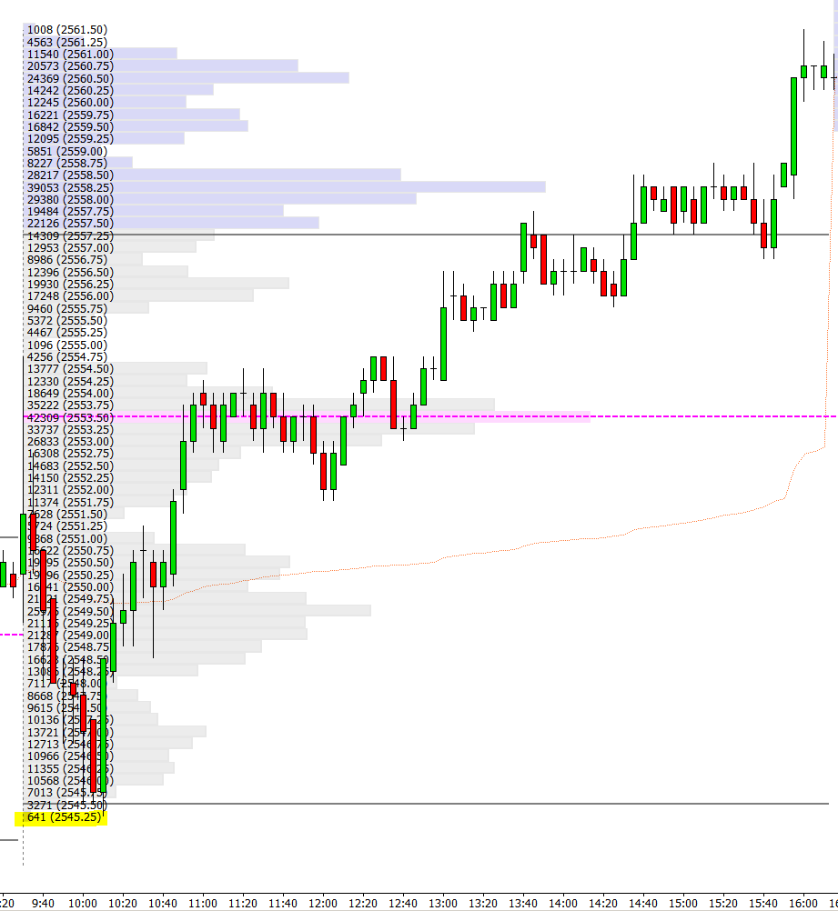 SierraChart Support, Please reffer to attached images... I have a Volume By Price VBP study attached to a 5min ES chart. Yesterday (October 19) the VBP study shows that there was a Volume of 641 contracts traded at 2545.25 (the low of day). This value seems incorrect if you compared it to the provided CME Time and Sales data that shows that 108 contracts were traded at this price. I have Ticks Per Volume Bar set at 1 My data is from CQG Fix Is there something that I should be setting to have this value right? Is there a bug here? Why would the value be so different? Thank you for your help |