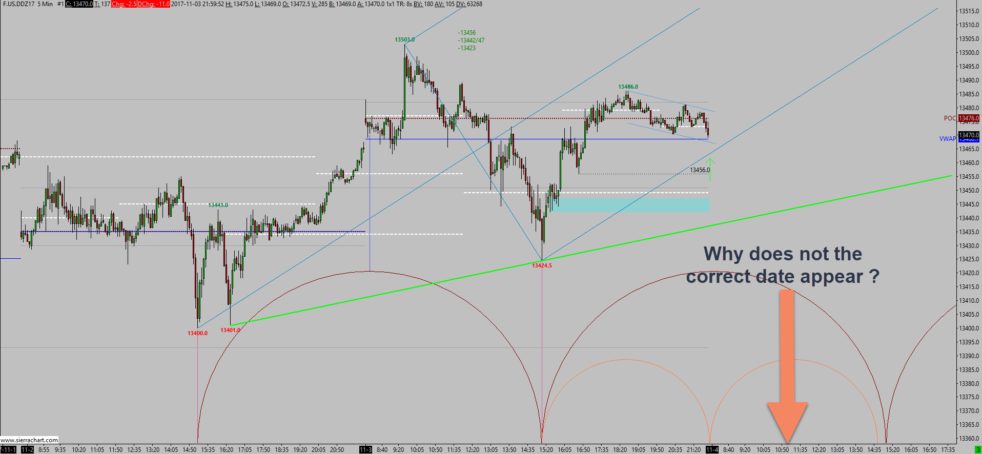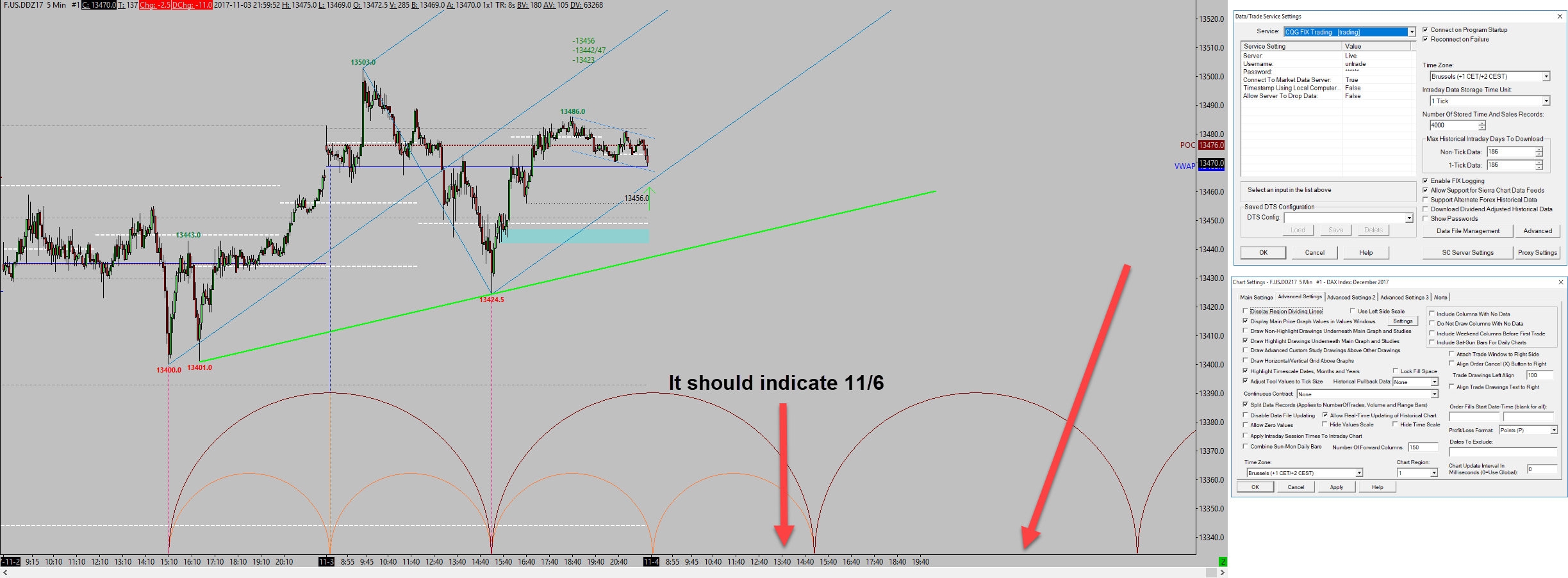 What is the time zone for that chart? Refer to: Time Zone Setting There are two time zone settings. One of them is global and one of them is specific to an individual chart. Sierra Chart Support - Engineering Level Your definitive source for support. Other responses are from users. Try to keep your questions brief and to the point. Be aware of support policy: https://www.sierrachart.com/index.php?l=PostingInformation.php#GeneralInformation For the most reliable, advanced, and zero cost futures order routing, *change* to the Teton service: Sierra Chart Teton Futures Order Routing |