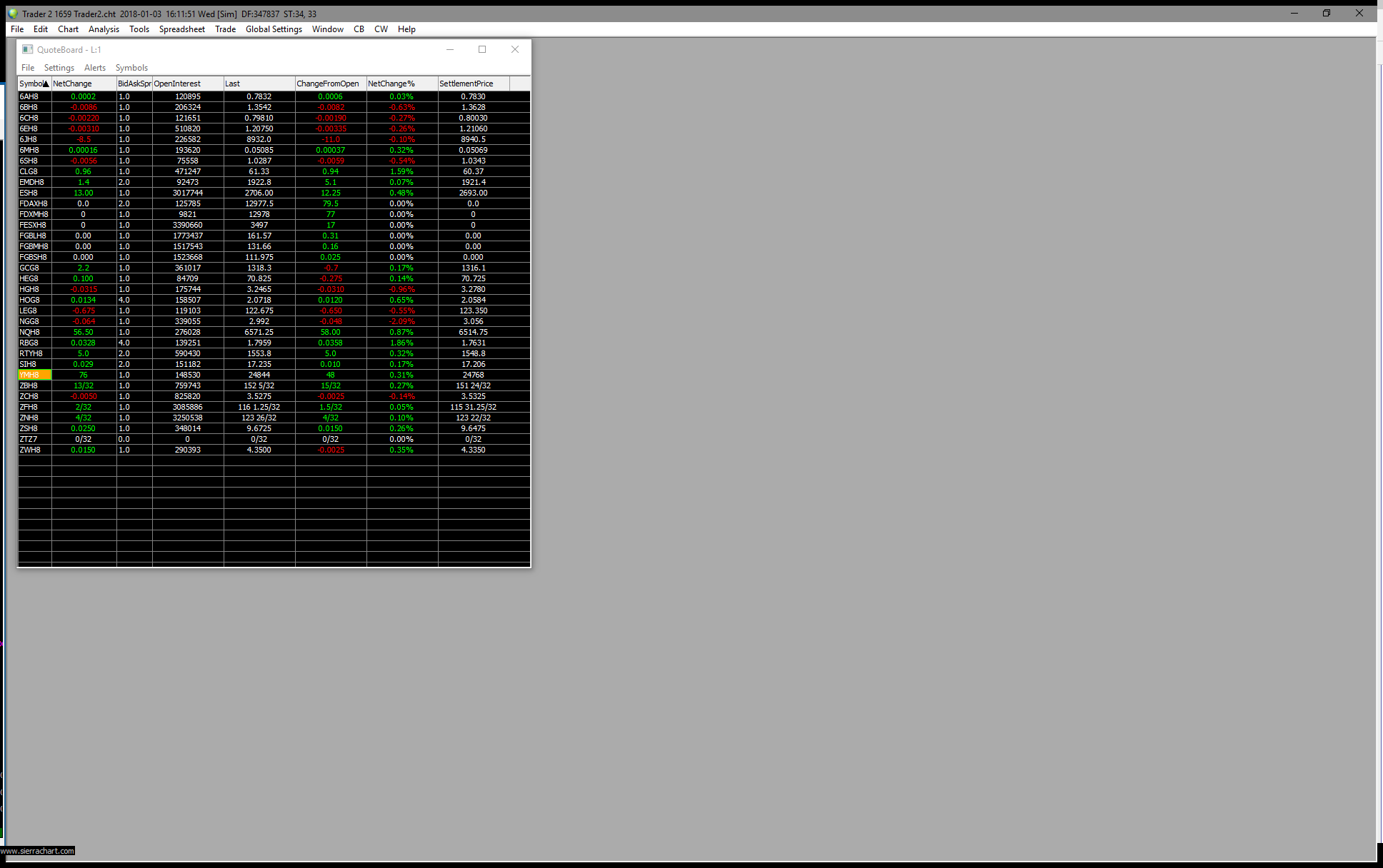 Eurex net change fields are showing 0.0 today. Yesterday they were showing values which were incorrect. Attached image of Quoteboard was taken a few minutes ago after I had logged off and back on. Please advise if you find a solution http://www.sierrachart.com/image.php?Image=1514995911338.png |