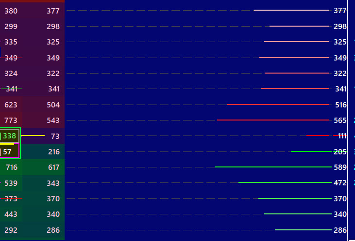 Hi there, I'm noticing that the last column (that shows the current limit orders) of the Depth of Market Historical Graph is lagging quite a bit. In the attached image, you can see that the last column of the historical graph does not match up with the DOM graph on chart. When in replay mode, both the last column and the DOM graph match up perfectly however, the lag occurs when viewing the market in real-time. How can I resolve this? Thank you! |