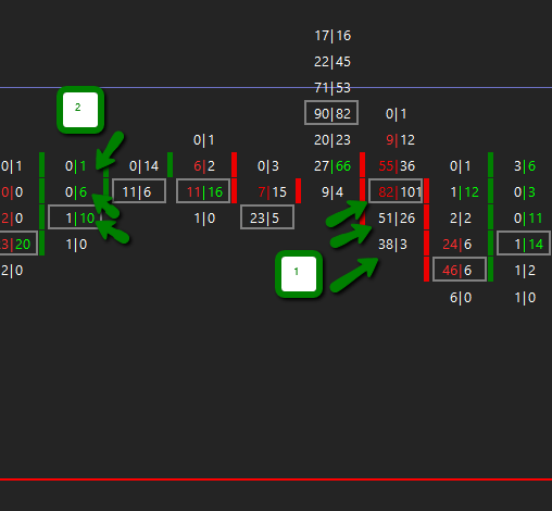 Hi Team, Trying to get an alert working based on a sequential decline in bids (on down bar) and sequential decline in offers (on up bar). Would like this to occur over 3 prices minimum. Image attached: 1) You can see on the down bar the 3 last prints decline in sequential order (82-51-38) 2) You can see on the up bar the 3 last prints decline in sequential order (10-6-1) Would like to have an arrow or text below/above the candle when the alert is triggered. This would be applicable on candle close. Any help would be greatly appreciated! |