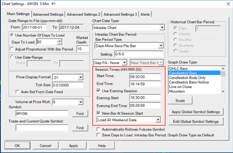 The Chart Settings you show in post #4 is for a stock. We looked at that stock and there really is very little evening trading. Also the evening session begins at 16:00:00. Every stock is going to be different in regards to pre-and post-market trading. The pre-and post-market data if they exist, is always downloaded. There is nothing special to do in regards to that. Sierra Chart Support - Engineering Level Your definitive source for support. Other responses are from users. Try to keep your questions brief and to the point. Be aware of support policy: https://www.sierrachart.com/index.php?l=PostingInformation.php#GeneralInformation For the most reliable, advanced, and zero cost futures order routing, *change* to the Teton service: Sierra Chart Teton Futures Order Routing |