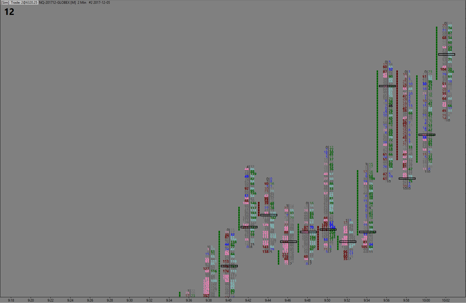 There was a change to this particular coloring for the Numbers Bars in version 1641. You can see the information on what changed here: https://www.sierrachart.com/index.php?page=doc/Whats_New.php#SCVer1641 For the most reliable, advanced, and zero cost futures order routing, use the Teton service: Sierra Chart Teton Futures Order Routing |
