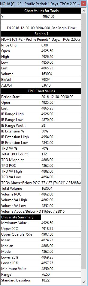 Is there a way to export the daily VAH, VAL and VPOC values? I am trying to avoid manually putting it into an Excel file to later import into R. Any help would be greatly appreciated. Thanks in advance. If I could export the data for each day, that shows in the "Chart Values Window" that would be a HUGE time saver. Date Time Of Last Edit: 2017-12-27 22:40:42