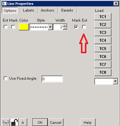Hi, For a client project I am adding a s_UseTool DrawingType "DRAWING_LINE" to a chart with ACSIL. This drawing can be modified by a user. I would like to detect changes made to some of the line properties by a user. I detect all the things I need except one. What I cannot find in the s_UseTool member description. I would like to know if there is a member that sets the right Ext checkbox value. If this is not available can this be added? edit: I tried using "ExtendRight" but it does not work on DRAWING_LINE. Thanks in advance. Frederik Date Time Of Last Edit: 2017-12-28 19:01:52