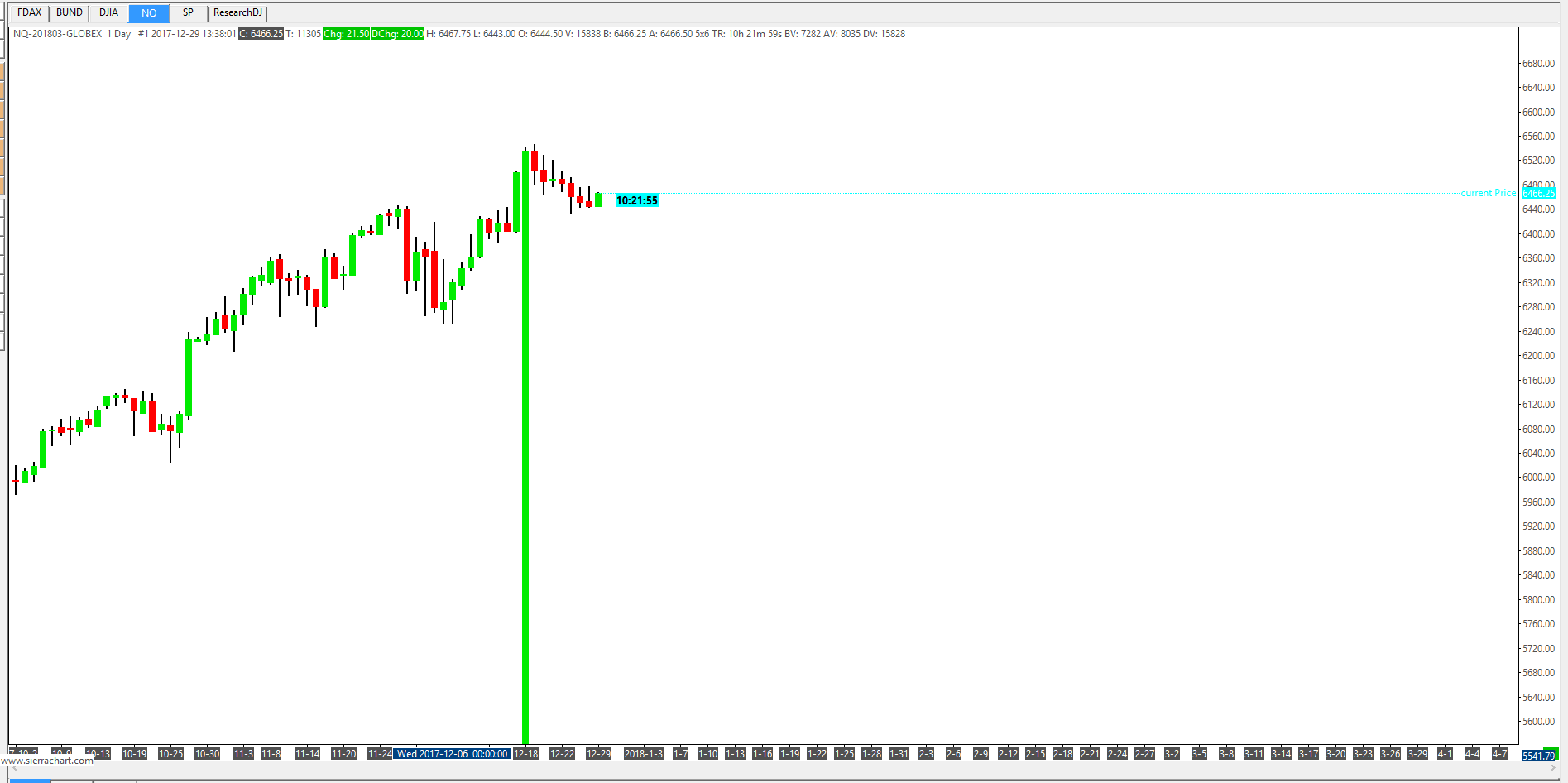 Hello, I am using Interactive Brokers Datafeed for Charting and Trading... now i have a problem with e-mini DOW, S&P and NQ! on the 17. December 2017 there is a big Candle as you can see on the Screenshot! Thats a problem for me, because some studies show the false data and on the TWS the data is correct http://www.sierrachart.com/image.php?Image=15145510847.png I use the correct Contract, i hope you can help me |