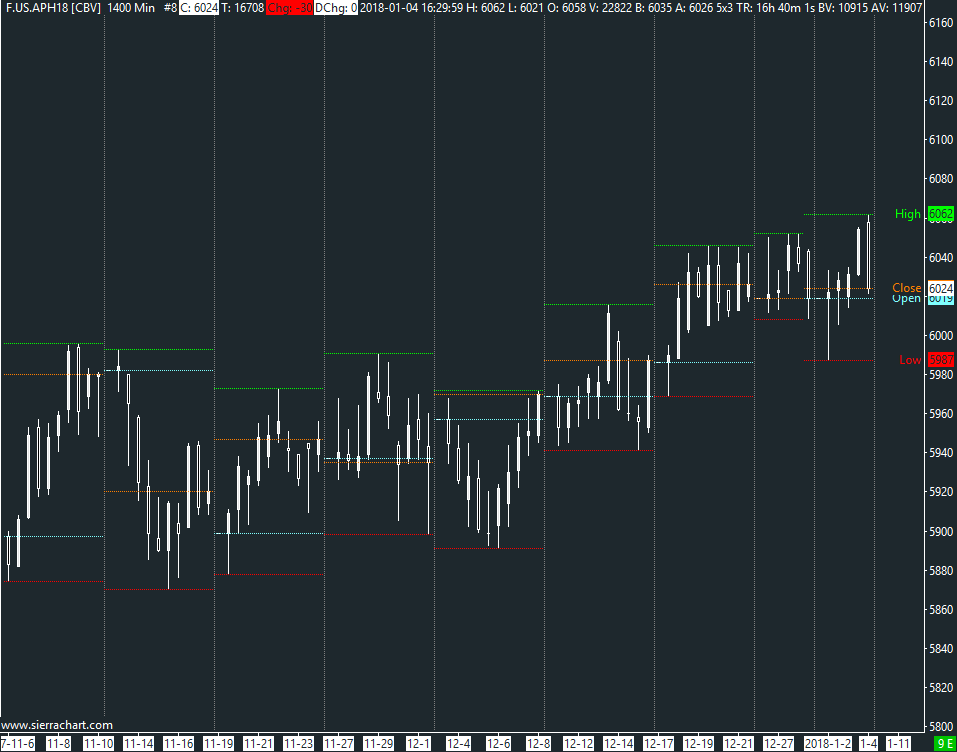 This is the relevant documentation for this: Chart Session Times: Understanding Trading Day Dates Based on Session Times General Settings Window: Use Monday as Start of Week instead of Sunday (Global Settings >> General Settings >> General >> Data) Sierra Chart Support - Engineering Level Your definitive source for support. Other responses are from users. Try to keep your questions brief and to the point. Be aware of support policy: https://www.sierrachart.com/index.php?l=PostingInformation.php#GeneralInformation For the most reliable, advanced, and zero cost futures order routing, *change* to the Teton service: Sierra Chart Teton Futures Order Routing |