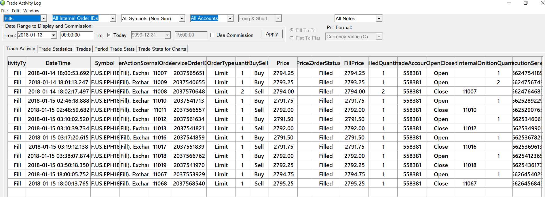 I have included two screen shots. The Order Entry Log and the Trade Activtiy Log for the same trading day. The Trade Activity Log shows the correct date and time for the trades. The Order Entry Log entry times are incorrect and the Last Activity Time shows the last time I restared Sierra. Note that there were no trades. Help please. Thanks |