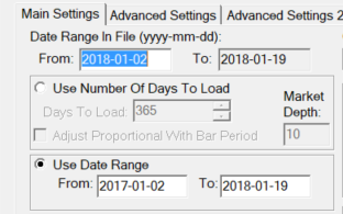 Hi there, I've followed the instructions in the reference link you've provided multiple times, and now the 30 min chart only loads from 2018-01-02. In multiple cases I've change the date range in the "Date Range In File (yyy-mm-dd):" fields, used the "Use number of days to load" option, or changed the date range in the "Use Date Range" fields. I've ran the "Delete all data and download", but the chart settings keeps reverting the "From" field in the "Date Range In File (yyy-mm-dd):" section to 2018-01-02. |
