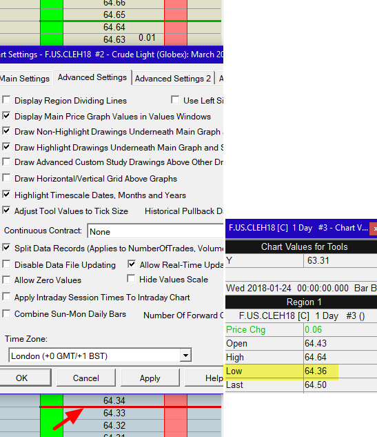 For Charts and DOM I set the same Time Zone = London. The Chart gives back the correct data of High and Low but not the DOM. DOM gives back my Time Zone (MEZ) High and Low. |