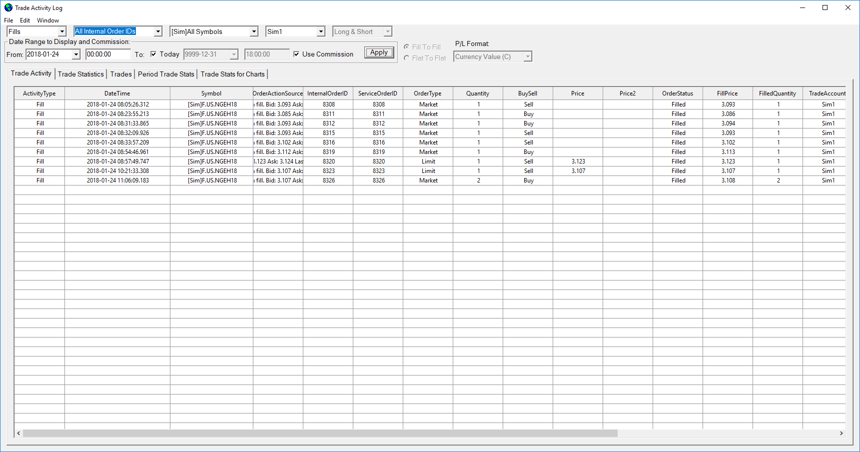 File >> Export will always export using UTC times. You need to use File >> Save Log As instead. Sierra Chart Support - Engineering Level Your definitive source for support. Other responses are from users. Try to keep your questions brief and to the point. Be aware of support policy: https://www.sierrachart.com/index.php?l=PostingInformation.php#GeneralInformation For the most reliable, advanced, and zero cost futures order routing, *change* to the Teton service: Sierra Chart Teton Futures Order Routing Date Time Of Last Edit: 2018-01-24 23:21:27