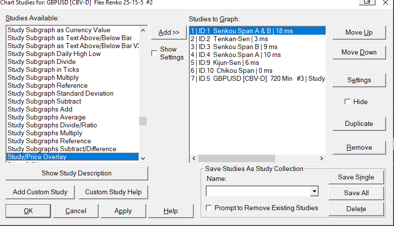 The formula in post #9 works for me with any of the Renko or Flex Renko settings you mention, on the EURUSD. Add the Color Bar Based On Alert study and put the formula in post #9 on its Alerts tab. This will give you a visual of every alert so you can quickly see if it's working properly. The formula in post #9 assumes your Senkou Span A & B study is ID1. Please verify this, and edit the formula if needed. I forgot to mention that. |
