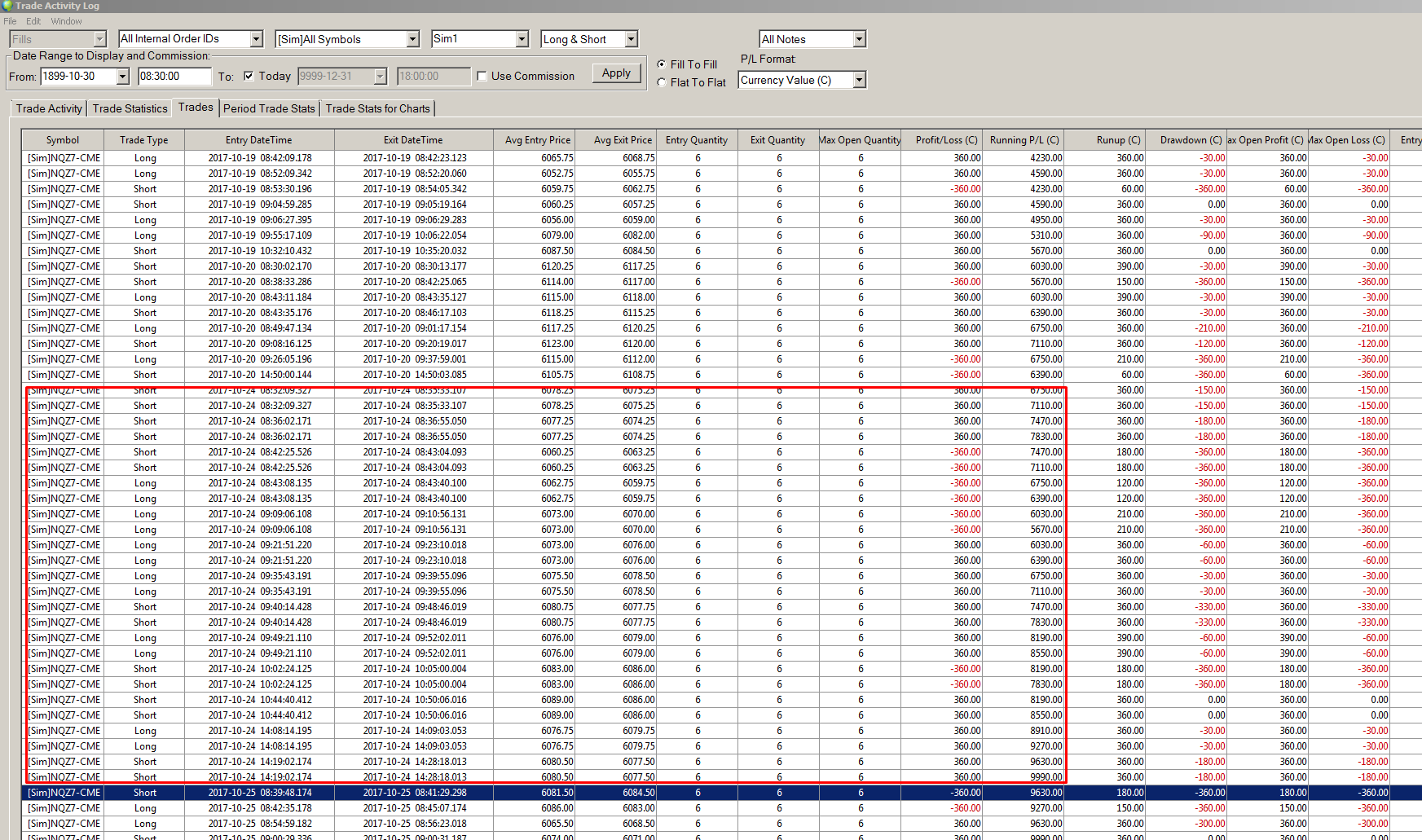 ok, thanx. is there any way to manualy delete duplicated trades? they probably don't have the same ID. so that is why.. because sierra cannot load longer history (error out of memory), i had to divide the backtest into multiple parts (first: 13.9 - 24.10, second 24.10 - 12.8.) i did 2 backtests, thus, by mistake, i have 24.10. twice and now, when i import them, they are "duplicated" (having the same timestamp etc..) so what should i do in this case? is there any way to elegantly get rid of it? |
