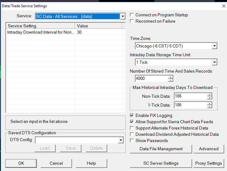 In regards to futures data, refer to: Is Historical and Real-time Data Included? Sierra Chart Support - Engineering Level Your definitive source for support. Other responses are from users. Try to keep your questions brief and to the point. Be aware of support policy: https://www.sierrachart.com/index.php?l=PostingInformation.php#GeneralInformation For the most reliable, advanced, and zero cost futures order routing, *change* to the Teton service: Sierra Chart Teton Futures Order Routing |