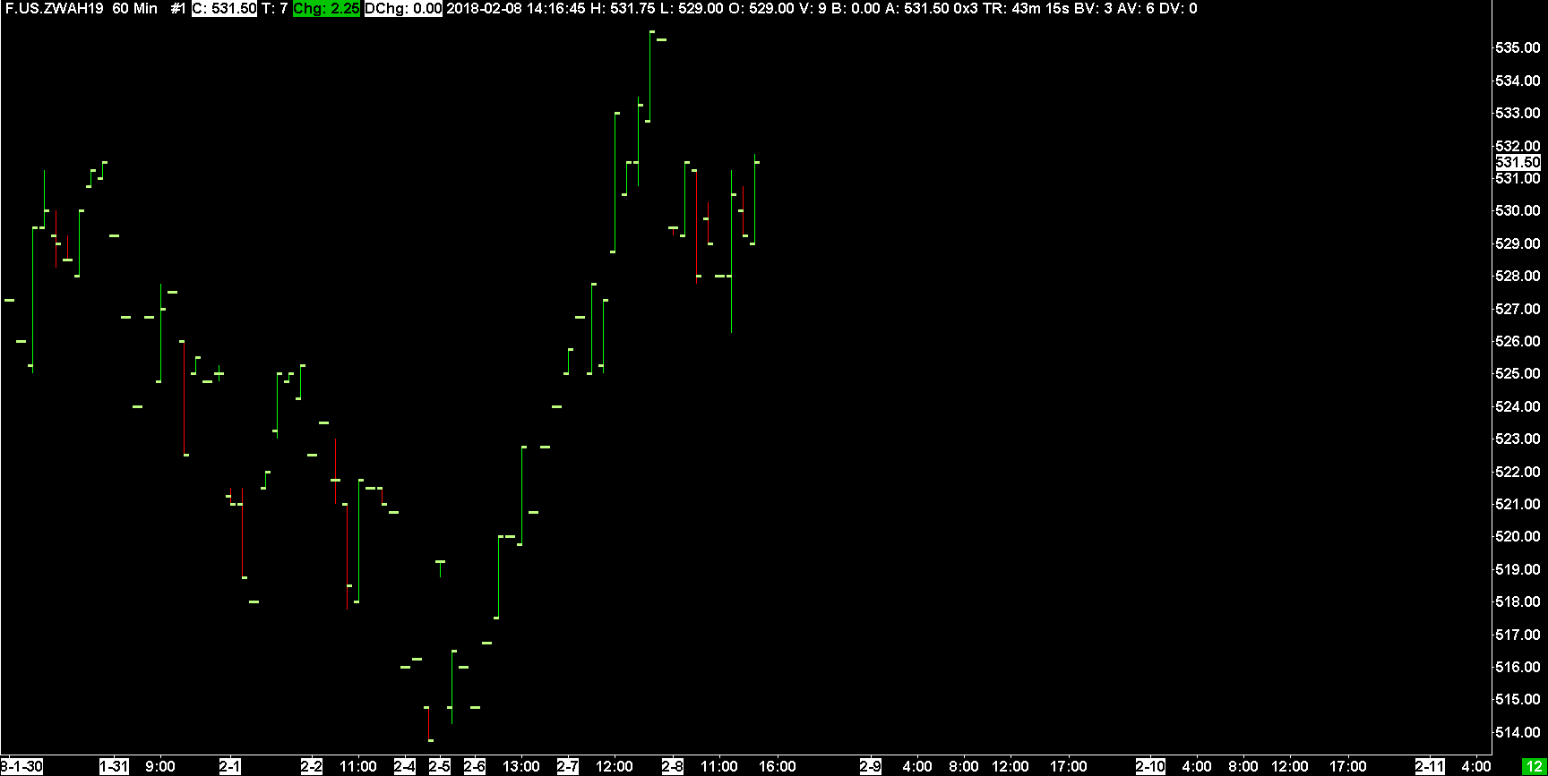 | The intraday data for March 2019 wheat has always been there. Perhaps you are asking about the mini wheat contract? We posted an image of the chart above. The additional crude oil contracts have now been added. If you still have trouble with wheat follow through this procedure: Follow the instructions here to clear the Message Log: Message Log: Clearing the Message Log Fully re-download the data in the chart by going to the chart and selecting Edit >>Delete All Data and Download. After about a minute provide a copy of the Message Log following these instructions: Support Board Posting Information: How to Post Your Message Log (Required In Some Cases) Sierra Chart Support - Engineering Level Your definitive source for support. Other responses are from users. Try to keep your questions brief and to the point. Be aware of support policy: https://www.sierrachart.com/index.php?l=PostingInformation.php#GeneralInformation For the most reliable, advanced, and zero cost futures order routing, *change* to the Teton service: Sierra Chart Teton Futures Order Routing Date Time Of Last Edit: 2018-02-08 22:47:30  |