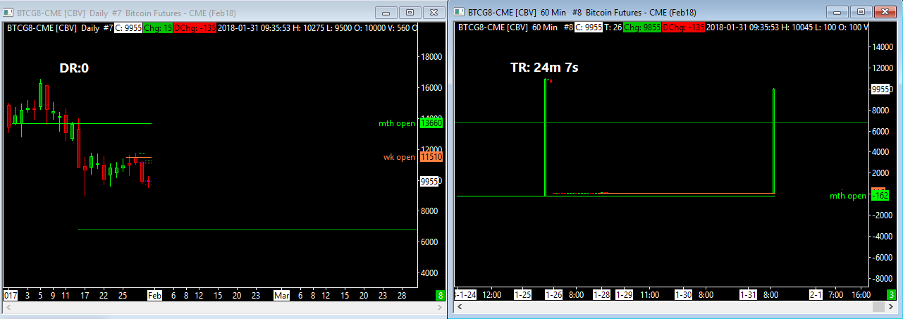 Hi Sierra Charts Team, Please advise if there is an error from your CME BTC data feed. Daily chart data shows up correctly, but anything below daily reflects an error. Please see charts attached. I have tried all the potential solutions in your Data & bar chart errors page (Data Errors or Spikes in Charts, Flat or Flat Line Graph, Compressed Graph, Errors with Date/Time Values). none are working. Thank you |