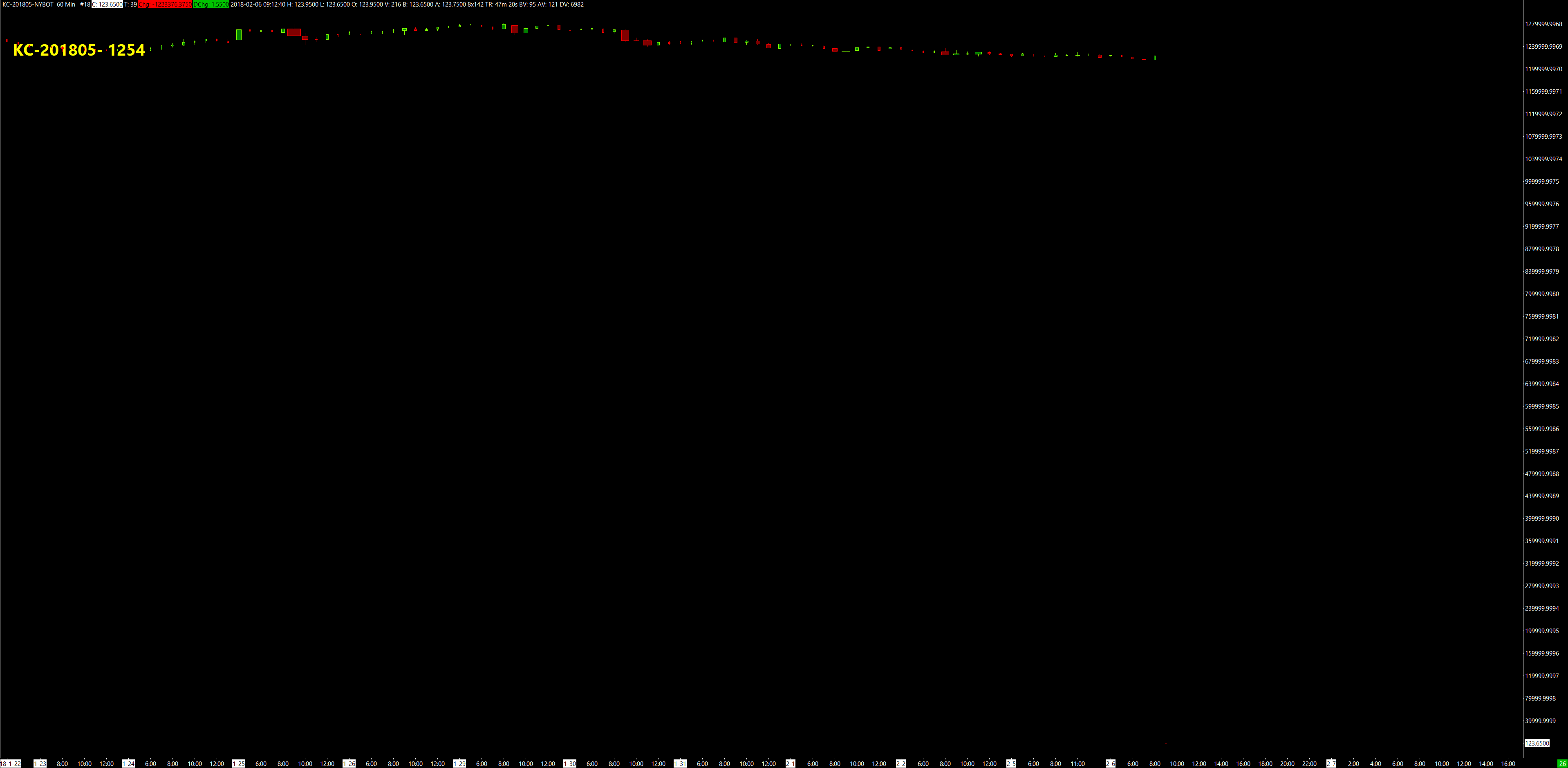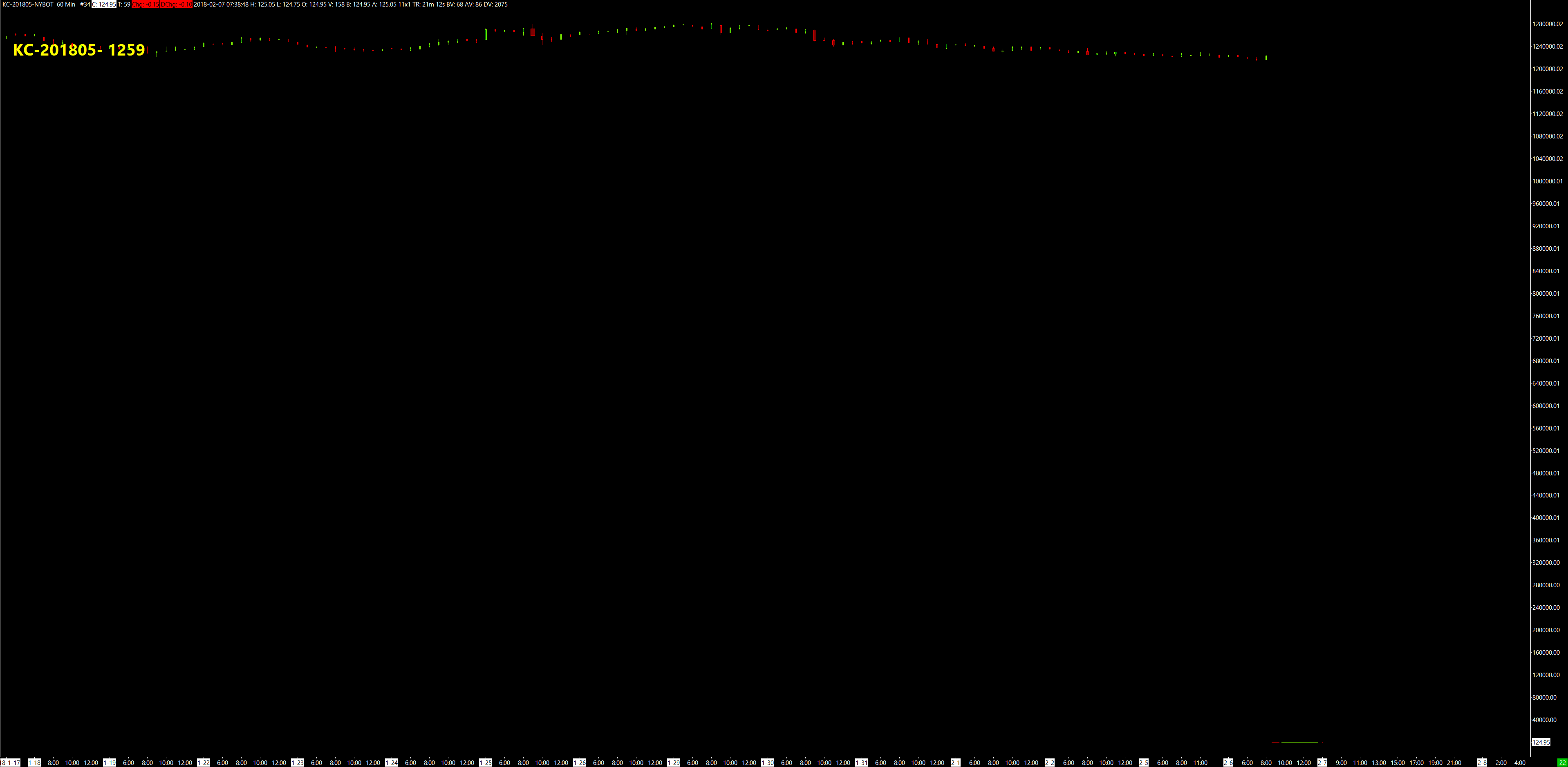 | Hi Sierra, That didn't work. So I went further, tried the full symbol reset and shut down sierra. Re-opened Sierra and opened brand new charts of KC with the idea of closing down my old KC charts. KC is one of my FAVOURITE markets. I appreciate your support is solving this. Now I did notice something that may hold the clue to this mystery - on the daily chart - see screen, the factor is off by 100. In the intraday chart, the factor is off by 100x100 or 10,000 http://www.sierrachart.com/image.php?Image=1518007083201.png http://www.sierrachart.com/image.php?Image=1518007154832.png |