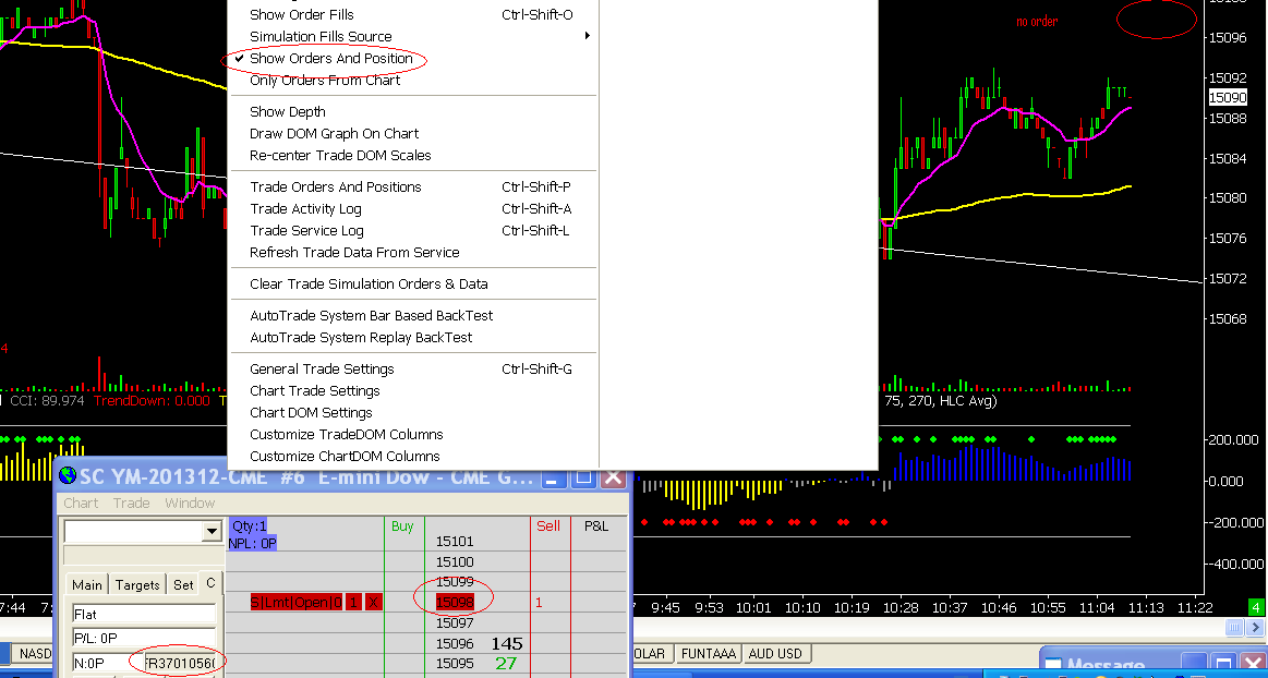 not good again .I placed a limit order YM and no shows it on the chart, and the option is turned on, it is not executed