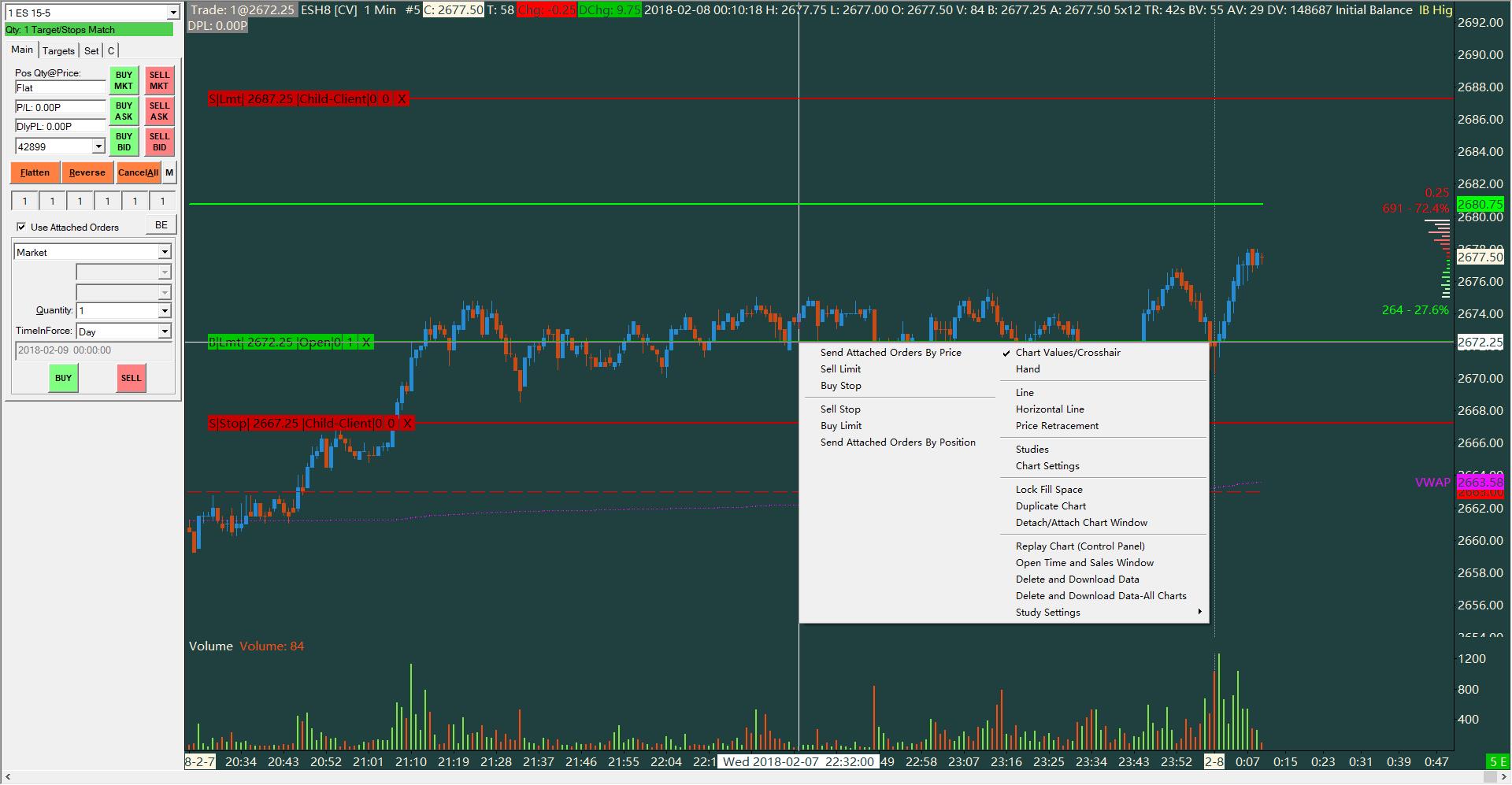 Do you mean if price is above your order you want only the Buy Limit and Sell Stop options to show on the submenu, similar to what happens in NinjaTrader? To the best of my knowledge you can't do that in SC. I do have my chart submenu setup (similar to yours it looks like) with a separator between upper order types for when price is below my desired entry and then the lower menu options for when price is above my desired entry. This way I don't have to "think" about which type of order I need when trades are moving quickly. |