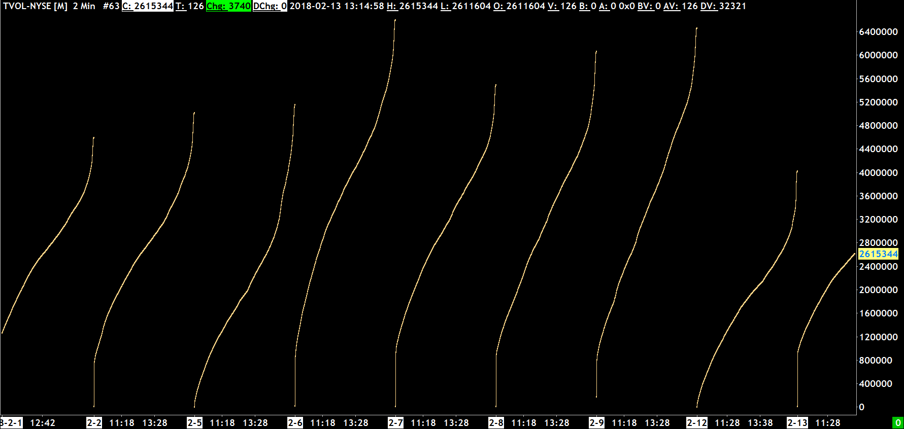 | The TVOL-NYSE reported 1817784 at 11:00am eastern 2/13/18. This appears ~twice as high as other sources reporting (TOS, WSJ, Yahoo). Other data providers have today's volume below yesterdays however TVOL-NYSE shows 71% higher then yesterdays. Struggling to understand the discrepancy. |