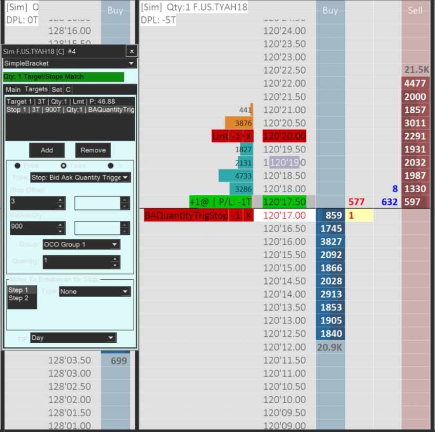 Here are more examples. As you can see in image 1 I'm using a Volume Stop. Image 2 shows that when any orders touch the stop it turns into a Mkt order. Image 3 shows price trading clean through it without stopping me out. Image 4 is my trade window with a volume threshold set to 600. It should have stopped me out, correct? Date Time Of Last Edit: 2018-02-16 20:10:28