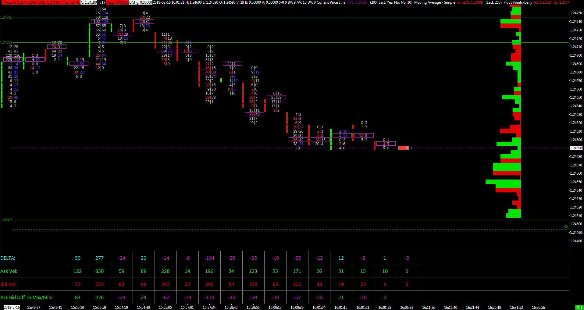 | Have a look at the Simple Alerts functionality: http://www.sierrachart.com/index.php?page=doc/StudyChartAlertsAndScanning.php There are also functions to get the bid volume and ask volume at price levels: http://www.sierrachart.com/index.php?page=doc/StudyChartAlertsAndScanning.php#SpecialFunctions_BVAP http://www.sierrachart.com/index.php?page=doc/StudyChartAlertsAndScanning.php#SpecialFunctions_AVAP Sierra Chart Support - Engineering Level Your definitive source for support. Other responses are from users. Try to keep your questions brief and to the point. Be aware of support policy: https://www.sierrachart.com/index.php?l=PostingInformation.php#GeneralInformation For the most reliable, advanced, and zero cost futures order routing, *change* to the Teton service: Sierra Chart Teton Futures Order Routing Date Time Of Last Edit: 2018-02-19 02:16:10  |